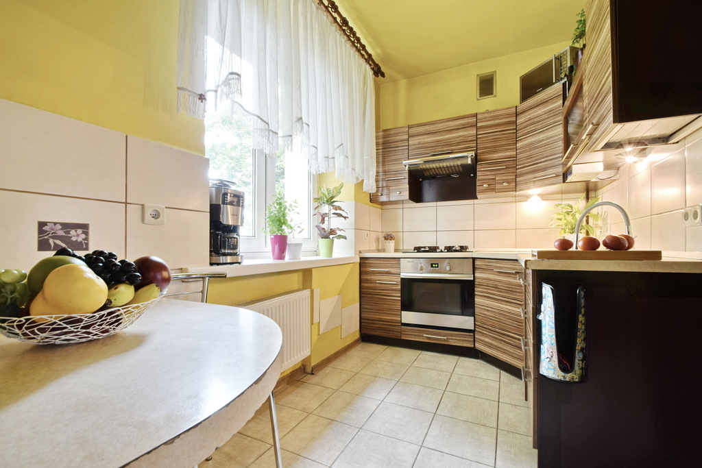 Kuchnia w tym mieszkaniu stanowi osobne miejsce z możliwością urządzenia jadalni.