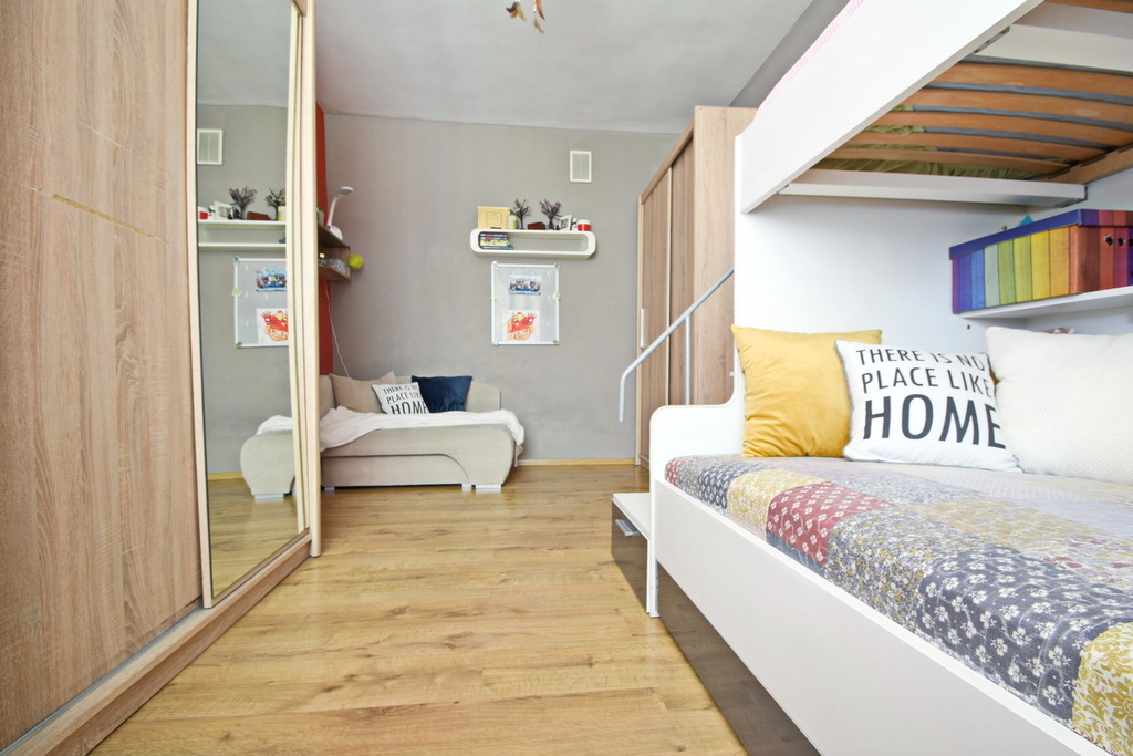 Posiada 2 bardzo ustawne pokoje, oba mogą posłużyć jako sypialnie, dzięki temu, że żaden z nich nie jest połączony z kuchnią.