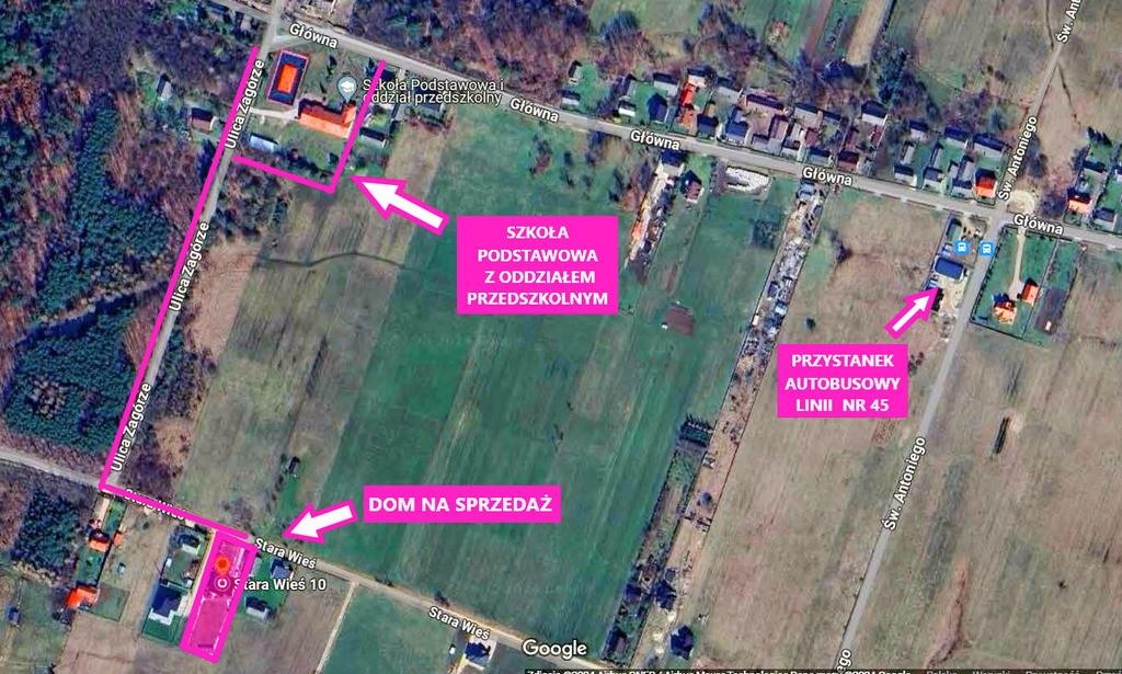 Nieruchomość znajduje się w pierwszej linii zabudowy, przy głównej asfaltowej drodze.