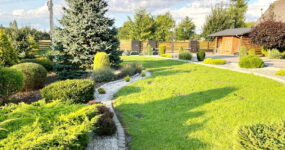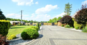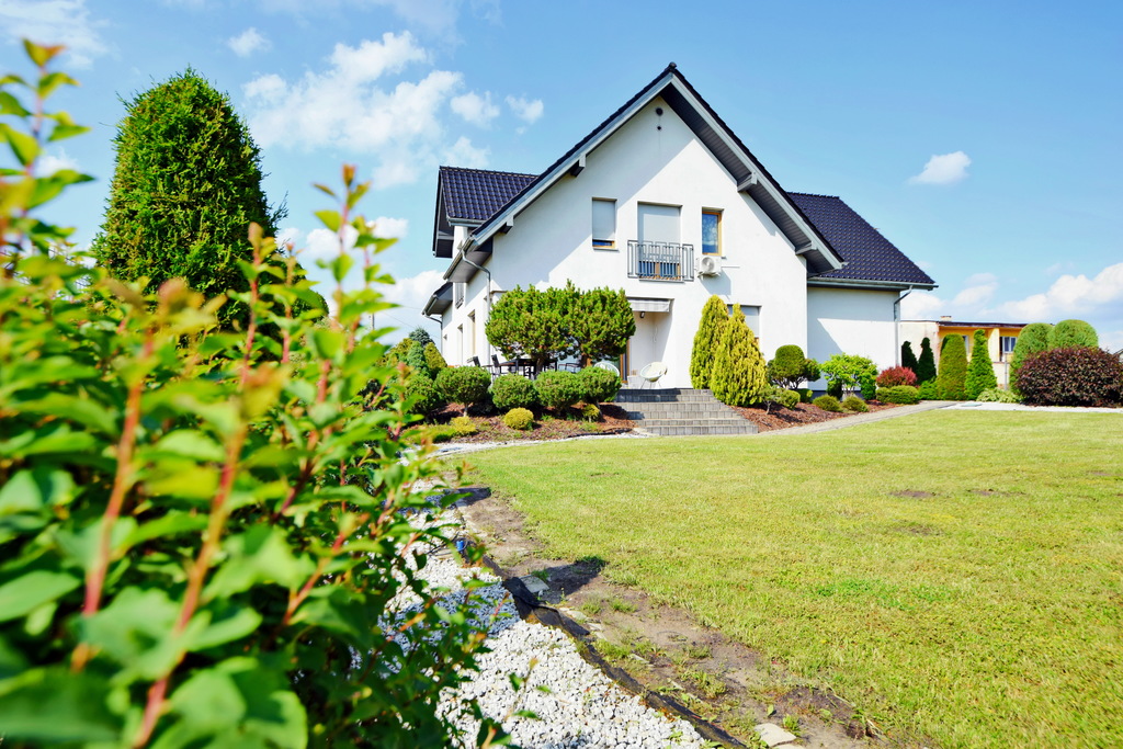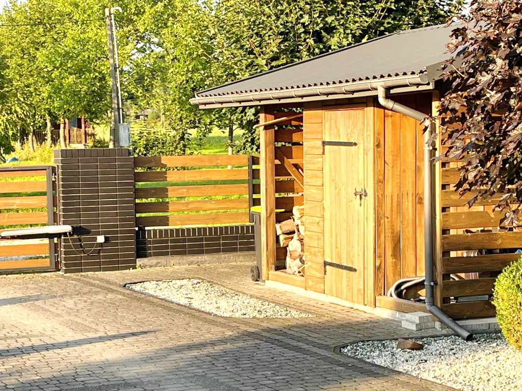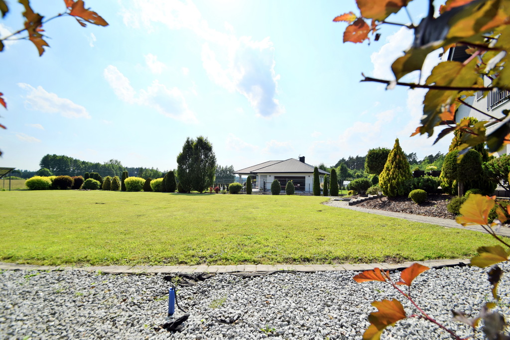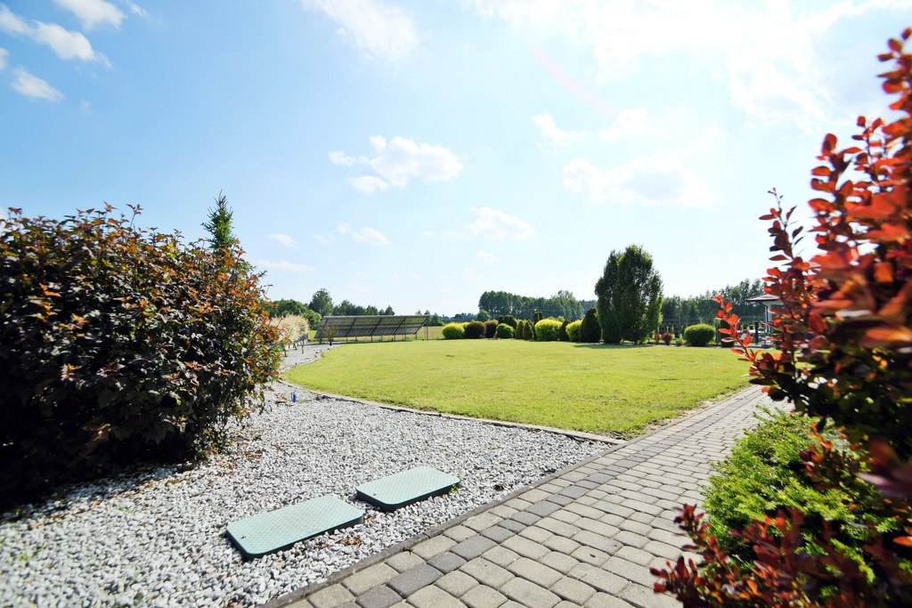 > Pięknie zagospodarowany ogród z miejscem na odpoczynek, zabawę i rodzinne spotkania.