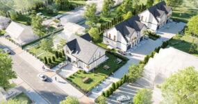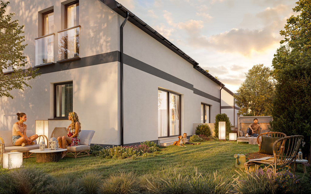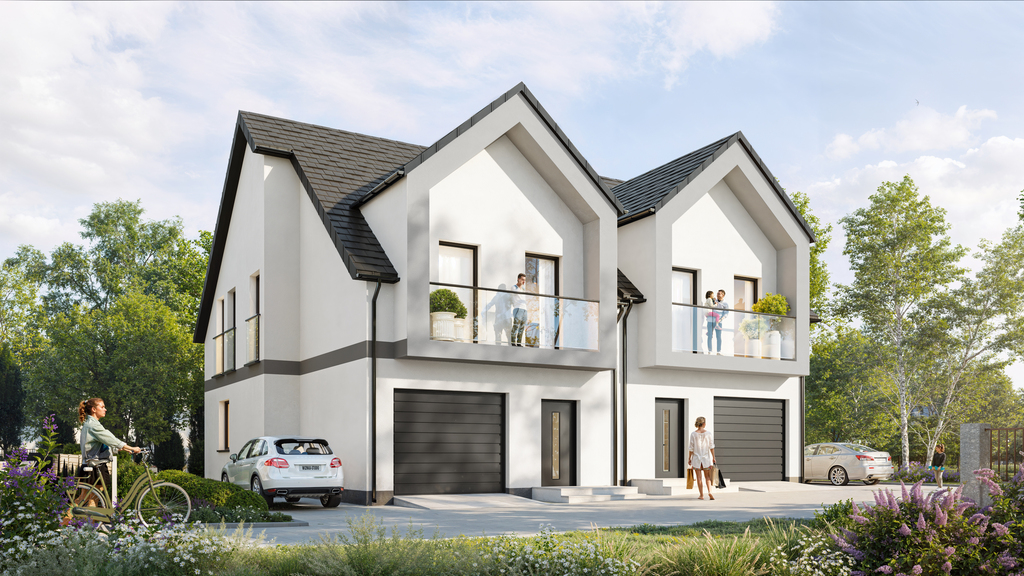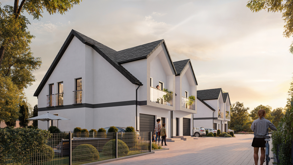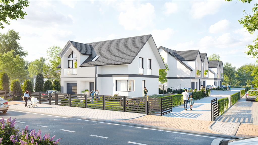 - Kameralna inwestycja składająca się z jednego domu jednorodzinnego (wolnostojącego) z oddzielnym wjazdem oraz dwóch domów jednorodzinnych w zabudowie dwulokalowej.